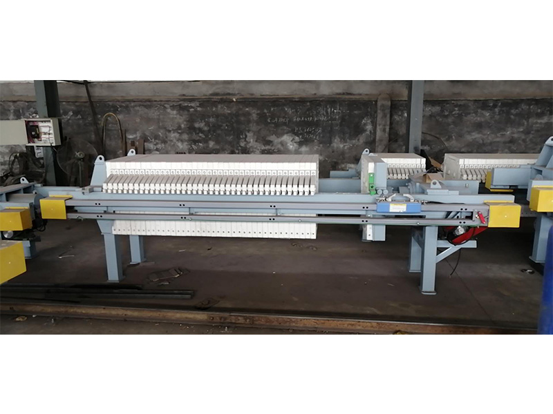 液壓壓緊板框式壓濾機由主機(機架和濾室)、液壓部件和電氣等部分組成。
